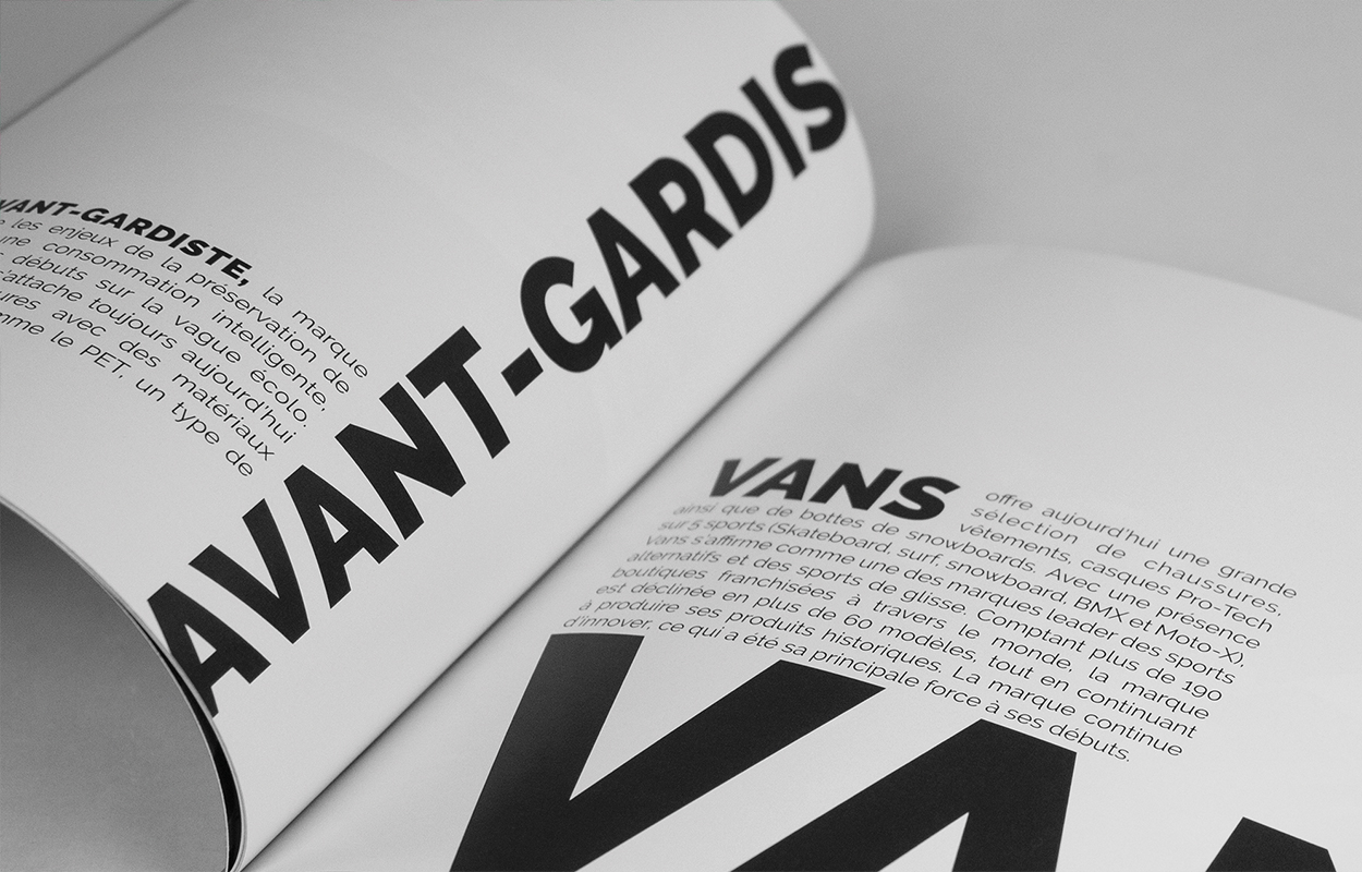 Brochure conçue pour l’anniversaire de Vans en empruntant un thème « Street-Style » pour représenter l’histoire de la compagnie.